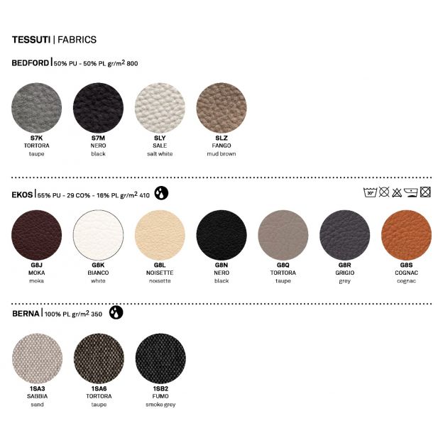 Sammensætning: 50% polyurethan – 50% polyester Taftvævet stof med et kornet udseende.