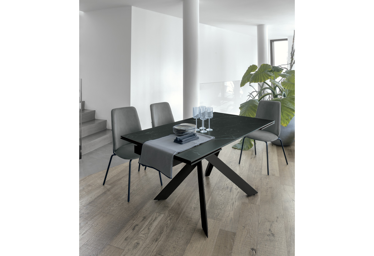 Udtræksmekanismen muliggør nem udvidelse af bordpladen og tilpasning til forskellige pladsbehov. I sin grundkonfiguration har Ciclone 160 -bordet plads til 6 personer, men kan rumme op til 10 personer, når det er fuldt udtrukket, hvilket gør det ideelt til middage, frokoster og hyggelige sammenkomster.