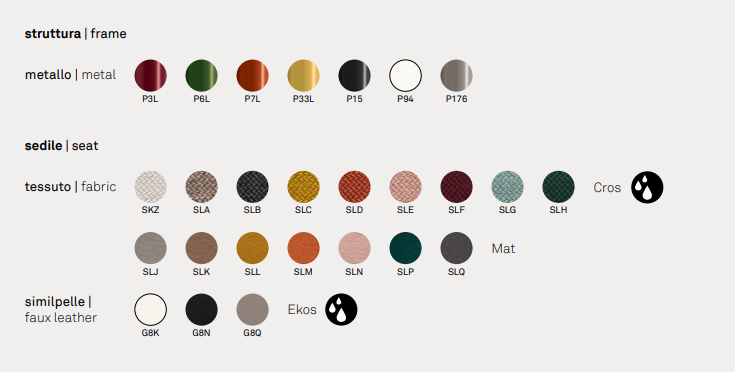Cozy er et udtryk for enkelhed, alsidighed og lethed. Det omsluttende sæde og ryglæn er polstret og betrukket med stof, understøttet af en farverig metalbase. Vælg din foretrukne farvekombination fra et bredt udvalg af stoffer og syv metalbasefarver.