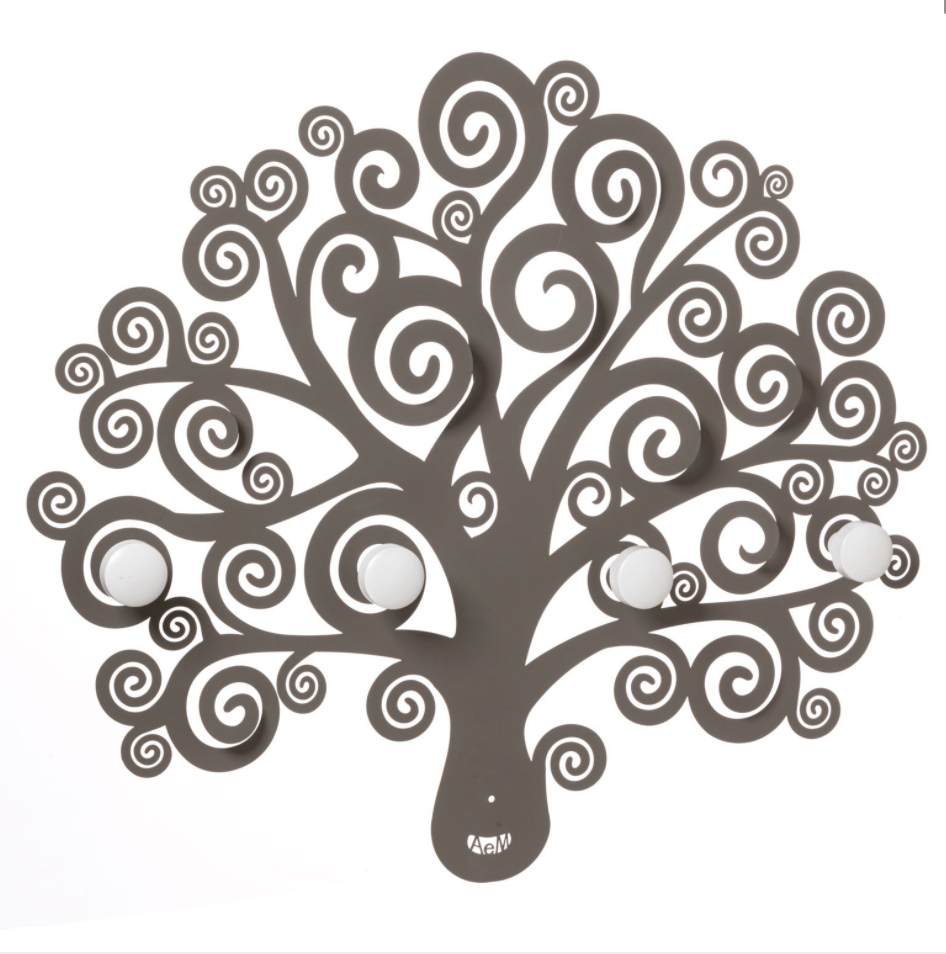 Vægknagerække med fire kroge placeret mellem de typiske grene på Livets Træ.
