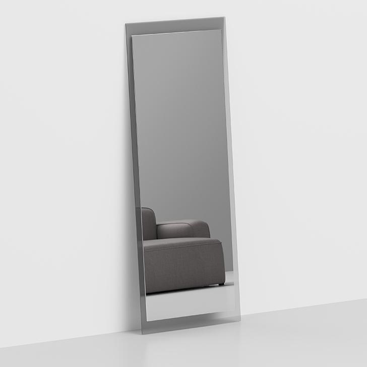 hvis transparente glas i en røget grå (eller bronze) farve indrammer spejlglasset i samme tone.