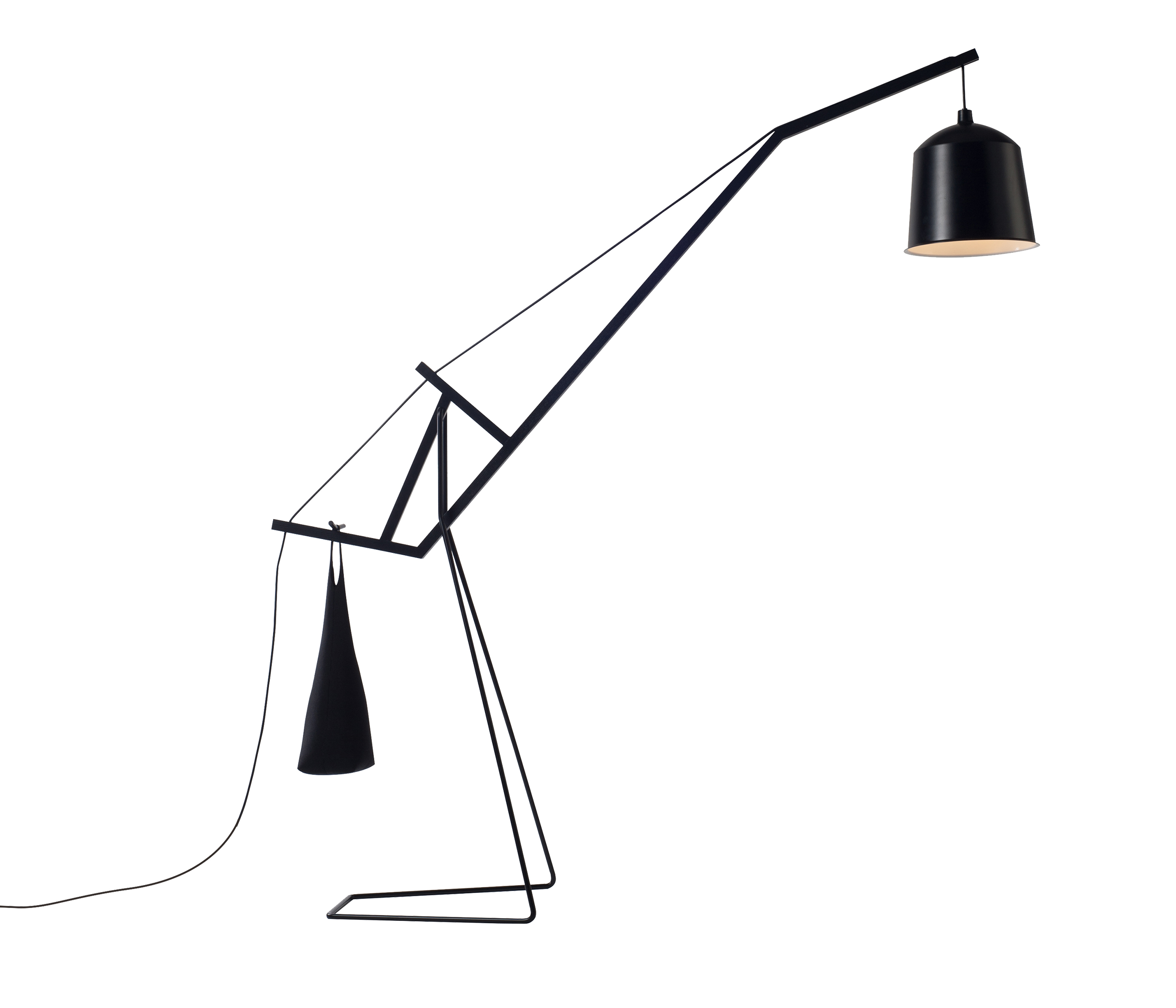 En gulvlampe er baseret på den simple mekanisme med en balanceret stråle.