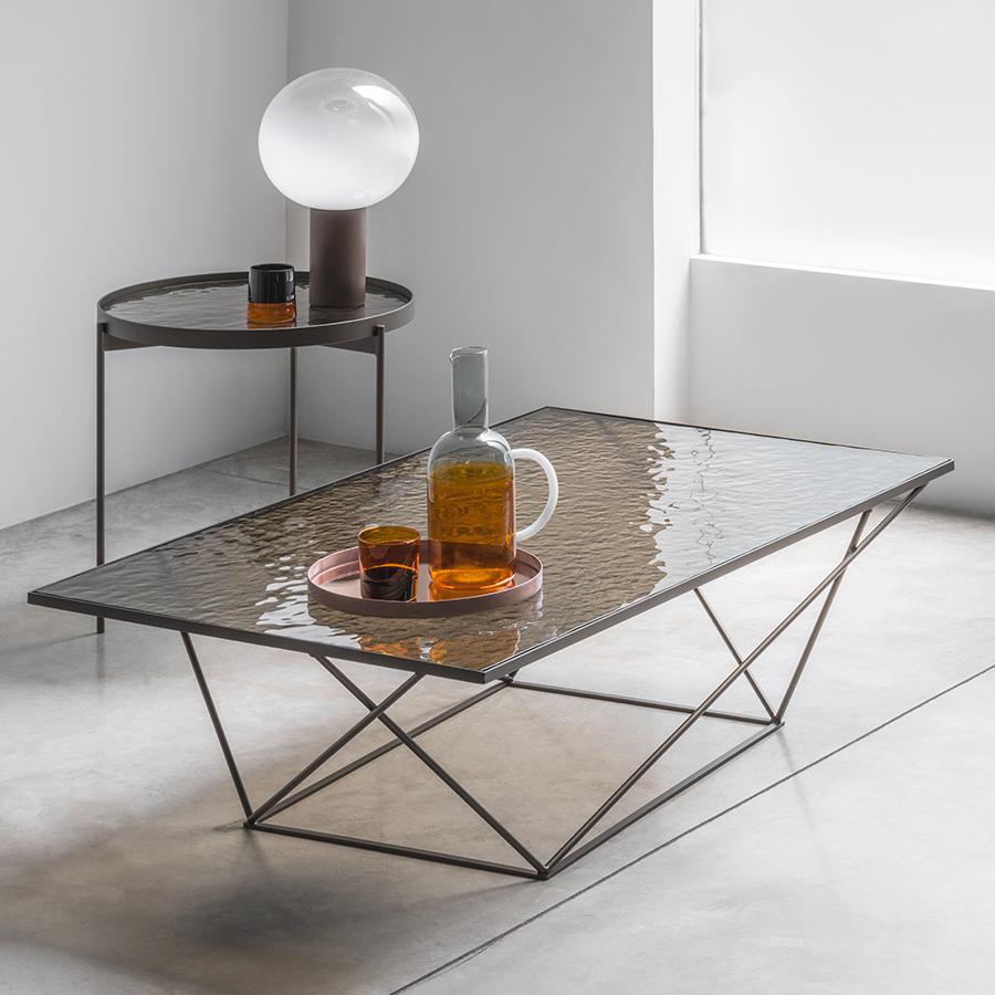 Sofabordets elegante og raffinerede design kombineres harmonisk med dets lette struktur og sofistikerede glas, som kan smedes eller digitalt dekoreres med marmoreffekt.