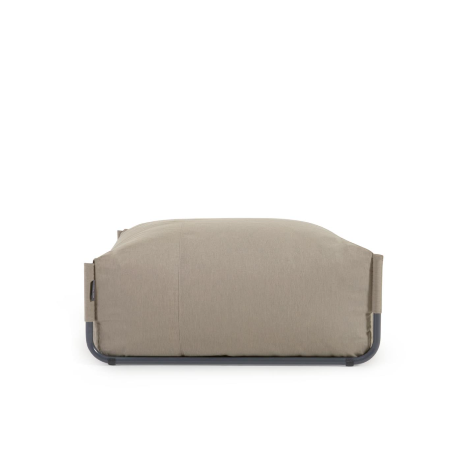 Puffen er beklædt med vandafvisende og UV-bestandigt teknisk stof og er polstret med hurtigtørrende, drænende materialer, der er ideelle til udendørs brug. Den modulære struktur gør det nemt at kombinere puffen med andre elementer i serien for at skabe skræddersyede kompositioner: hjørnesofaer, chaiselonger eller afslapningsøer.