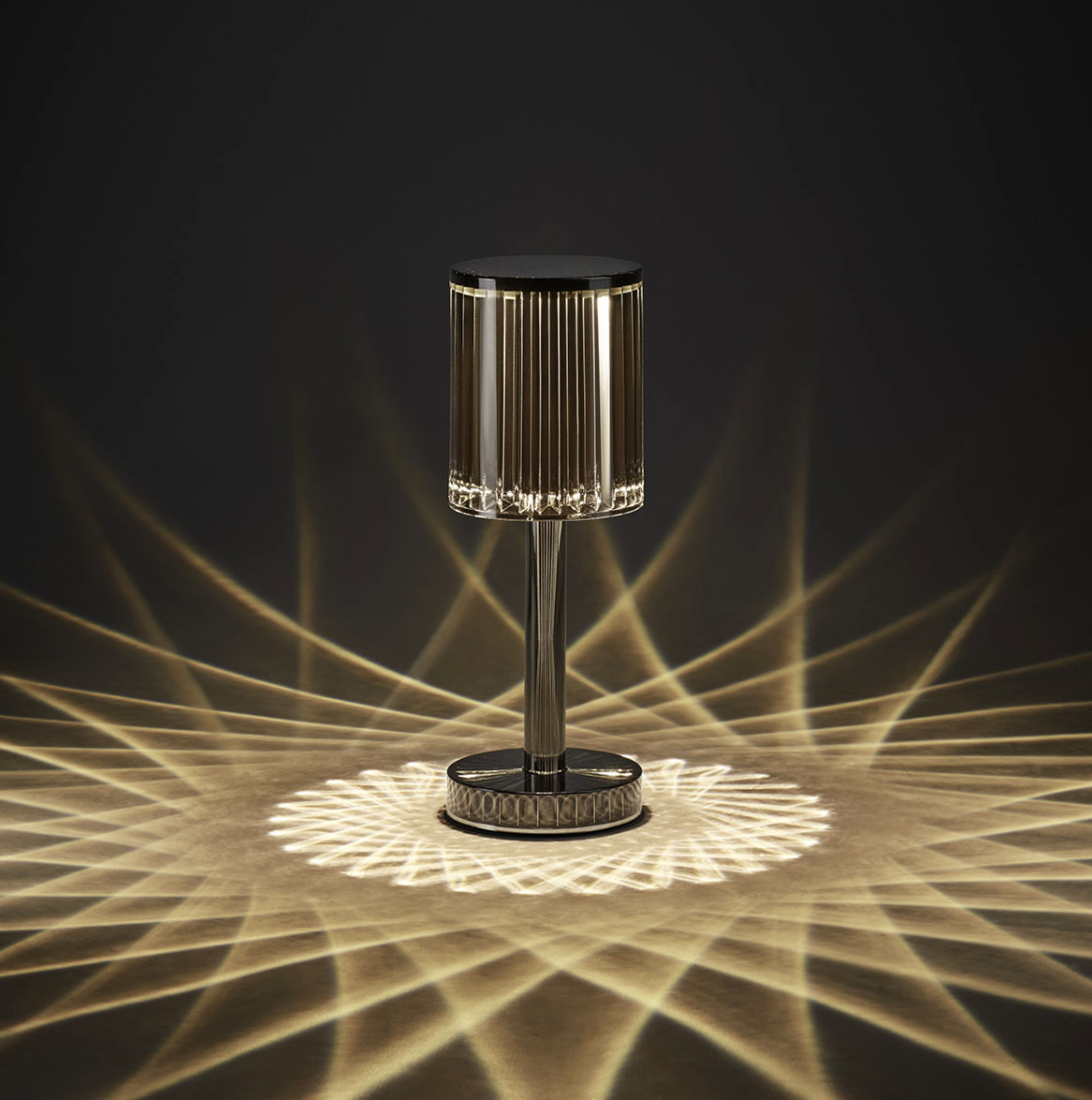 Bordlampe fremstillet af PMMA med indsprøjtningssystem.