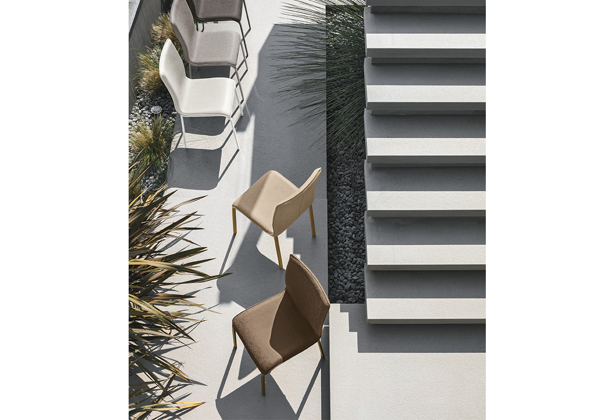 Sædet er en monocoque, der fås i to finish: Soft-Touch Vintage, som giver et sofistikeret look og blød komfort, eller mikrofiberstof med fløjlseffekt, som tilføjer et strejf af luksus og raffinement.