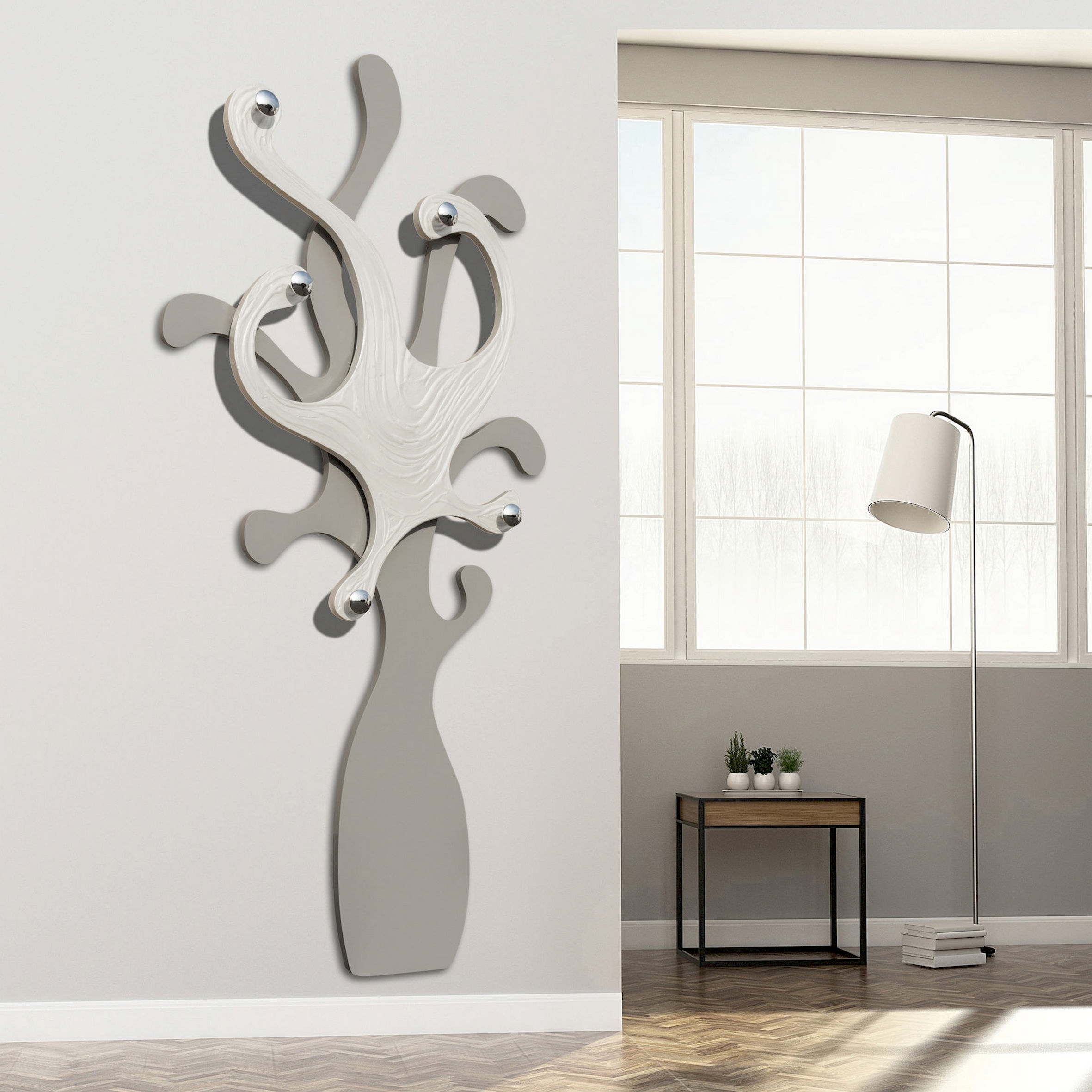 Den hvide Octopus-stumtjener P2479 fra Pintdecor er et unikt designet møbeltilbehør, ideelt til dem, der søger elegance og funktionalitet. Med en kontureret duegrå lakeret ramme og fem forkromede knopper skiller denne stumtjener sig ud med sit teksturerede reliefarbejde, hånddekoreret med en perlemorseffekt.