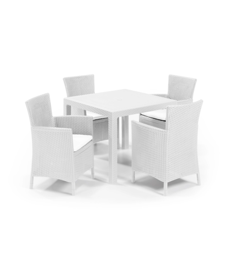 Designet med rattan-effekt giver et naturligt og moderne præg, mens det ergonomiske sæde og ryglæn sikrer komfort, selv ved længere tids brug.