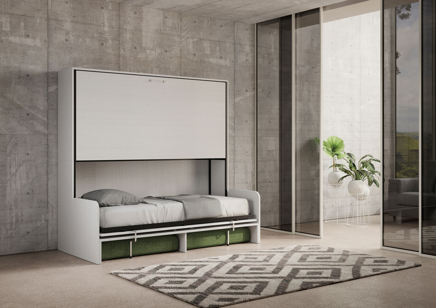 | Materiale | Kando vandret vægseng, version med to enkeltkøjesenge og sofa. Dette pladsbesparende møbel er ideelt til stuen: det fungerer som en behagelig sofa i løbet af dagen og forvandles hurtigt til en hyggelig seng, når det er nødvendigt, hvilket tilbyder både ko |