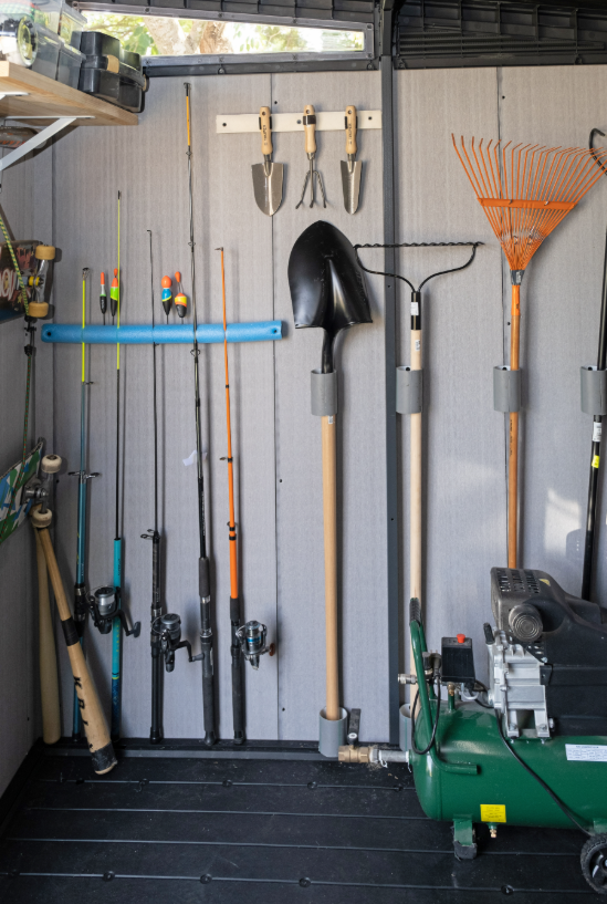 Det hævede gulv holder indholdet tørt, mens de malbare og perforerede paneler giver mulighed for maksimal tilpasning.