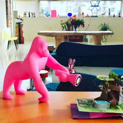 En gorilla har overtaget din stue! Men frygt ej, Kong er en følsom og blid sjæl indesluttet i en bordlampe, der vil gøre sig nyttig og oplyse alle dine mest dyrebare øjeblikke med sin drejearm, der retter lysstrålen fra forskellige vinkler. Vist her i xs-versionen er den kun egnet til indendørs brug.