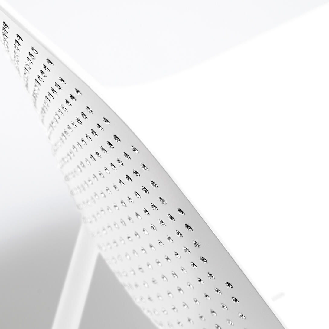 Finish: RAL 9016 hvid, RAL 9005 sort, 213 RAL Classic-farver, med mat nanokeramisk klarlak. Spejlblank aluminium/krom med blank nanokeramisk klarlak. Teksturerede finish: bladguld, sølvblad, kobberblad, sort blad med blank nanokeramisk klarlak.