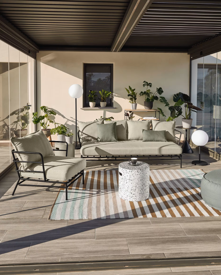 Mareluz-sofaen er ideel til haver, terrasser, udendørsområder eller andre opholdsrum og er vejr- og UV-bestandig. De medfølgende polstrede hynder med aftageligt betræk og behandlet til udendørs brug sikrer komfort og praktisk anvendelighed. Den fås i forskellige finish og neutrale nuancer og passer nemt sammen med andre møbler for at skabe raffinerede og funktionelle udendørs opholdsrum.