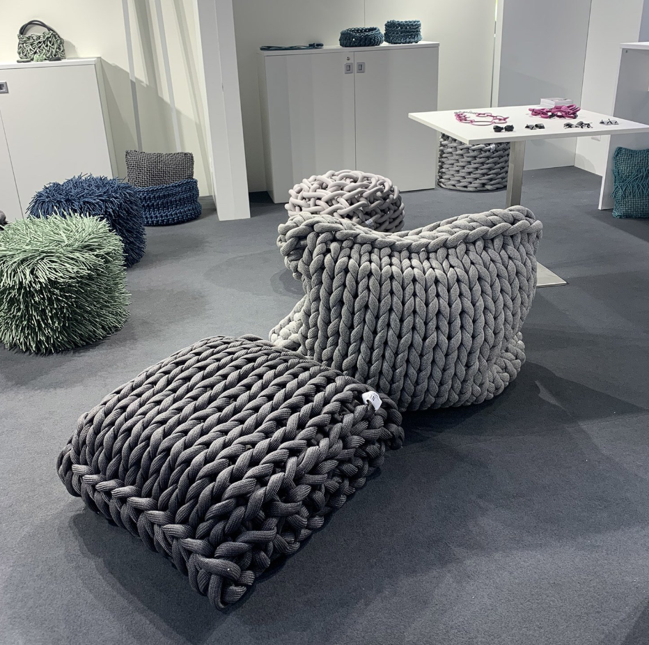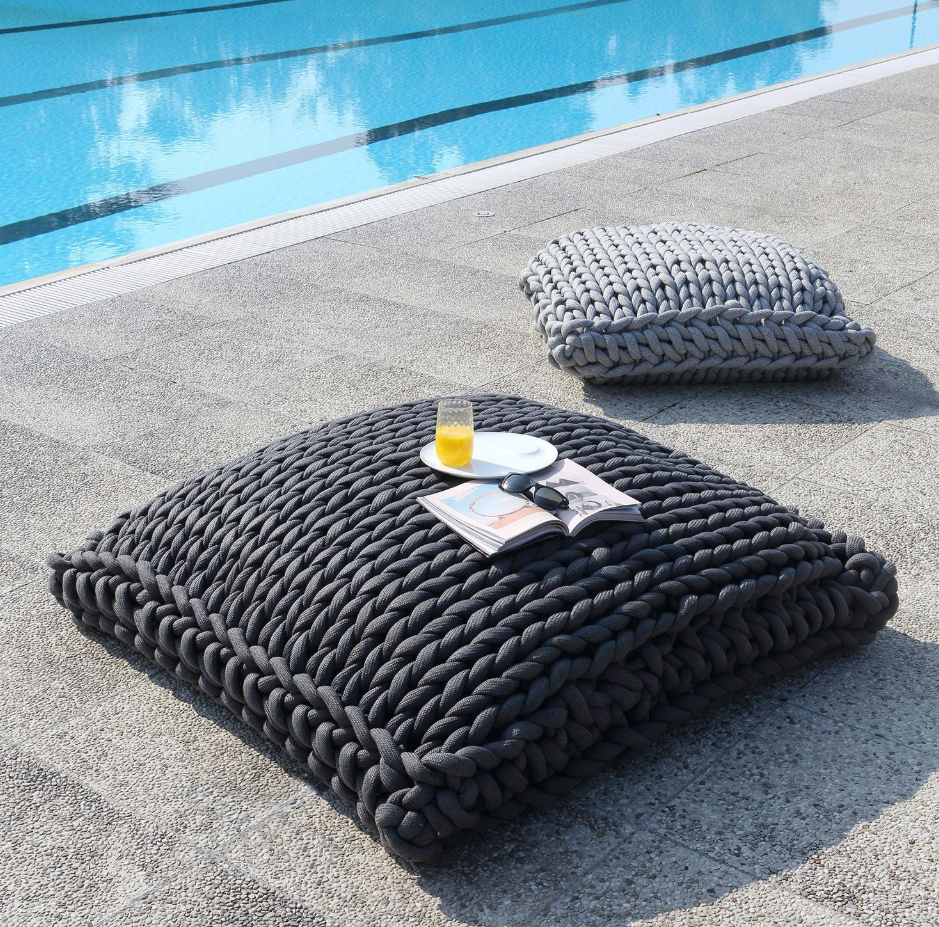 ROXY er en maxipude håndlavet med håndknyttet reb, designet til generøs komfort og et dristigt stil.