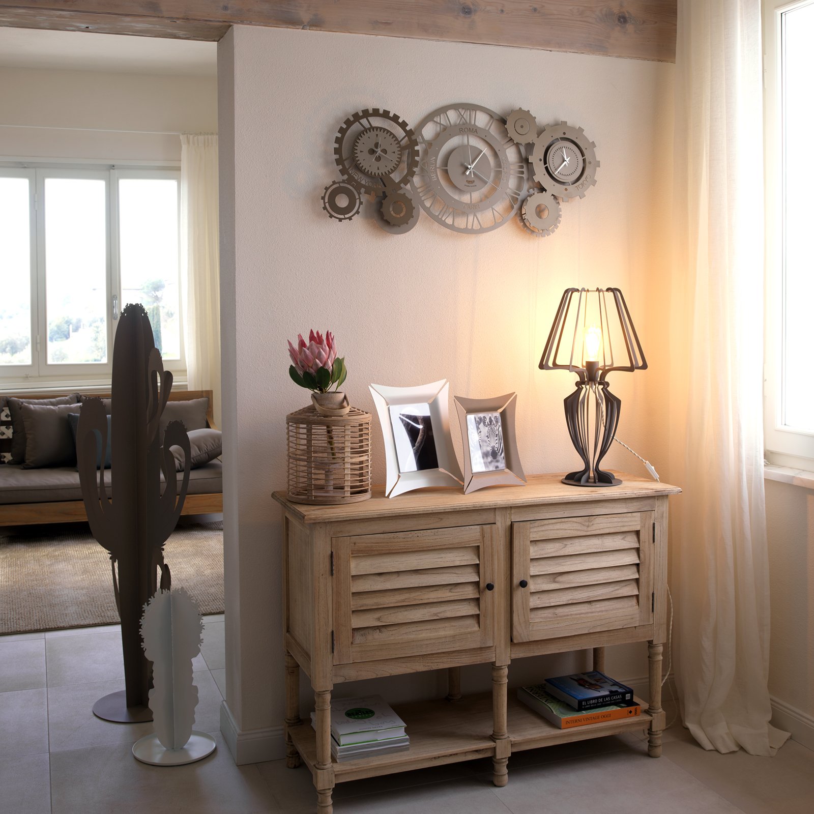 Fuso Meccano 3112-uret fra Arti e Mestieri er et vægur med en industriel og moderne karakter, inspireret af æstetikken i mekaniske strukturer og modulære systemer. Et unikt dekorativt tilbehør, der skiller sig ud med sin aflange form og geometriske detaljer , perfekt til at indrette moderne rum med personlighed.