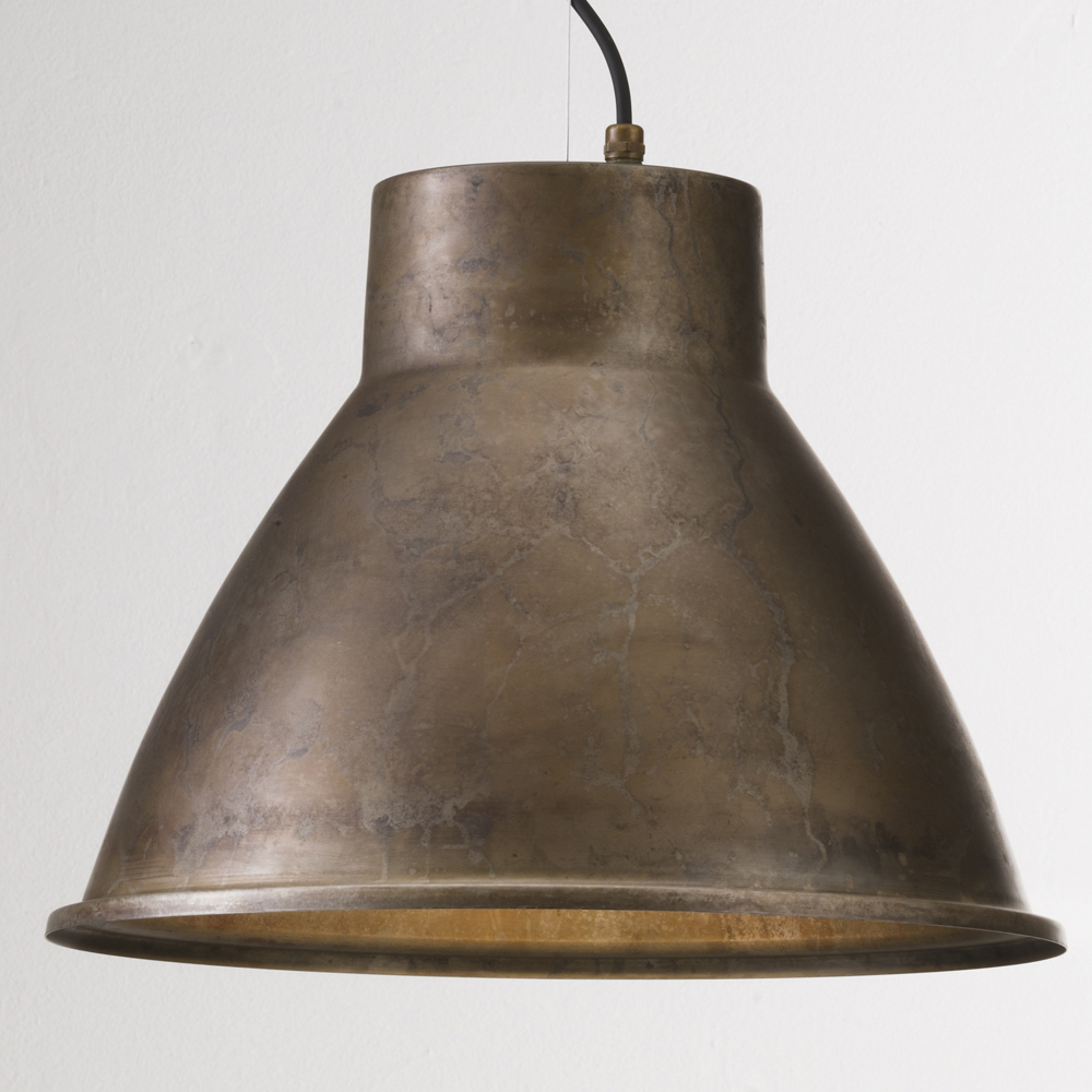 Loft - kollektionen består af pendellamper, væglamper, en bordlampe og en gulvlampe, alle i en jernfinish med støbte messingsamlinger.