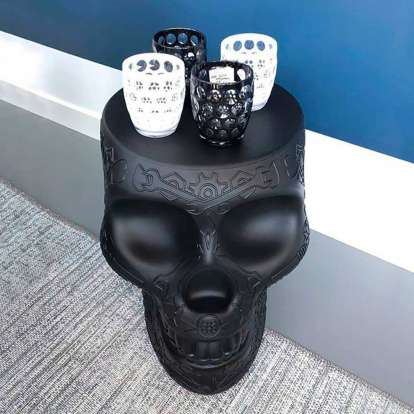 Mexico, designet af Studio Job, er et kranielignende designobjekt med et grafisk mønster på overfladen, der fungerer både som skammel og sofabord. Mexico minder om de traditionelle malede kranier fra sit navnebrorland og er en finurlig reference til den cykliske natur af vores tilstedeværelse på Jorden, hvor vi uddriver døden og fejrer livet. Perfekt til loungeområder, spisestuer og udendørsområder. Materiale : polyethylen