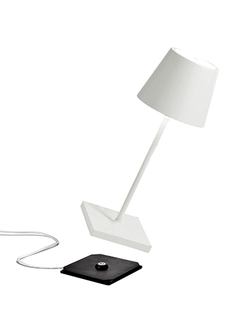 Genopladelig bordlampe, inklusive kontaktopladerbase, med malet aluminiumshus, polycarbonatdiffusor og LED-lyskilde