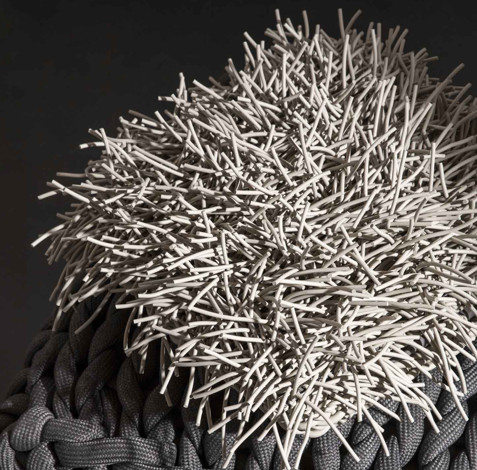 Håndvævet neoprenpude af porcupine med bomuldsfor: en original blanding af tekstur og komfort.