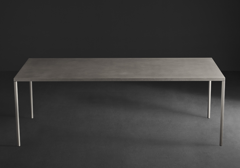 Bord med aluminiumsstel og stål- eller harpiksplade