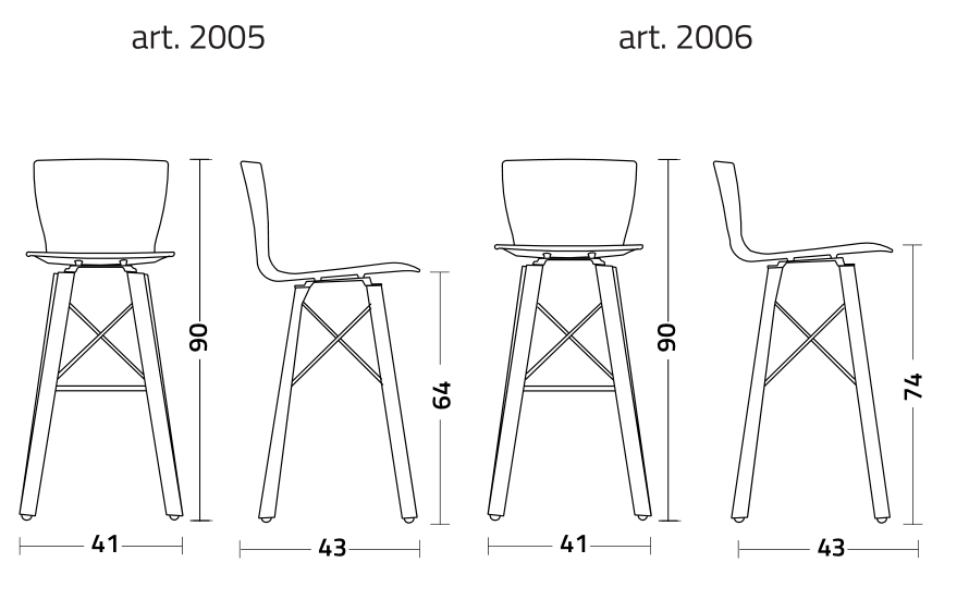 Skammel med stel af egetræ og stål og blødt sæde af polypropylen.