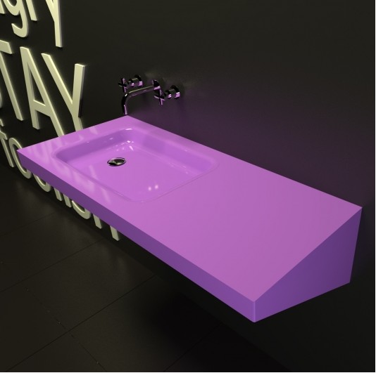 Formerne og det omhyggelige materialevalg skaber et materialespil og farvekontraster, der forbedrer hjemmets wellness-område. Rene, dristige linjer gør denne vask til et designermøbel til badeværelset.