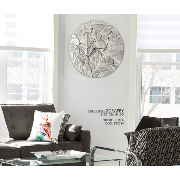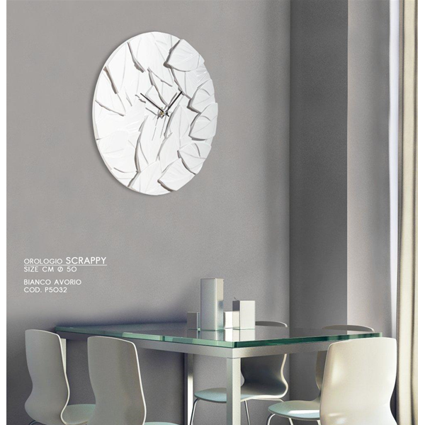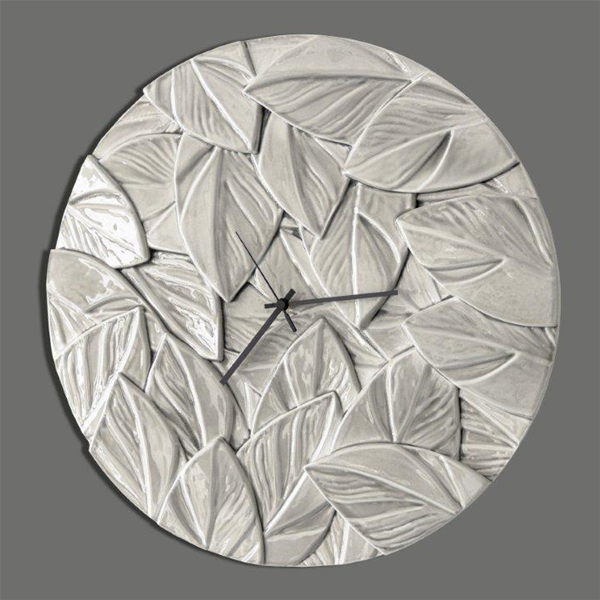 Basreliefur på harpiks med blank finish og centralt ur med sorte visere.