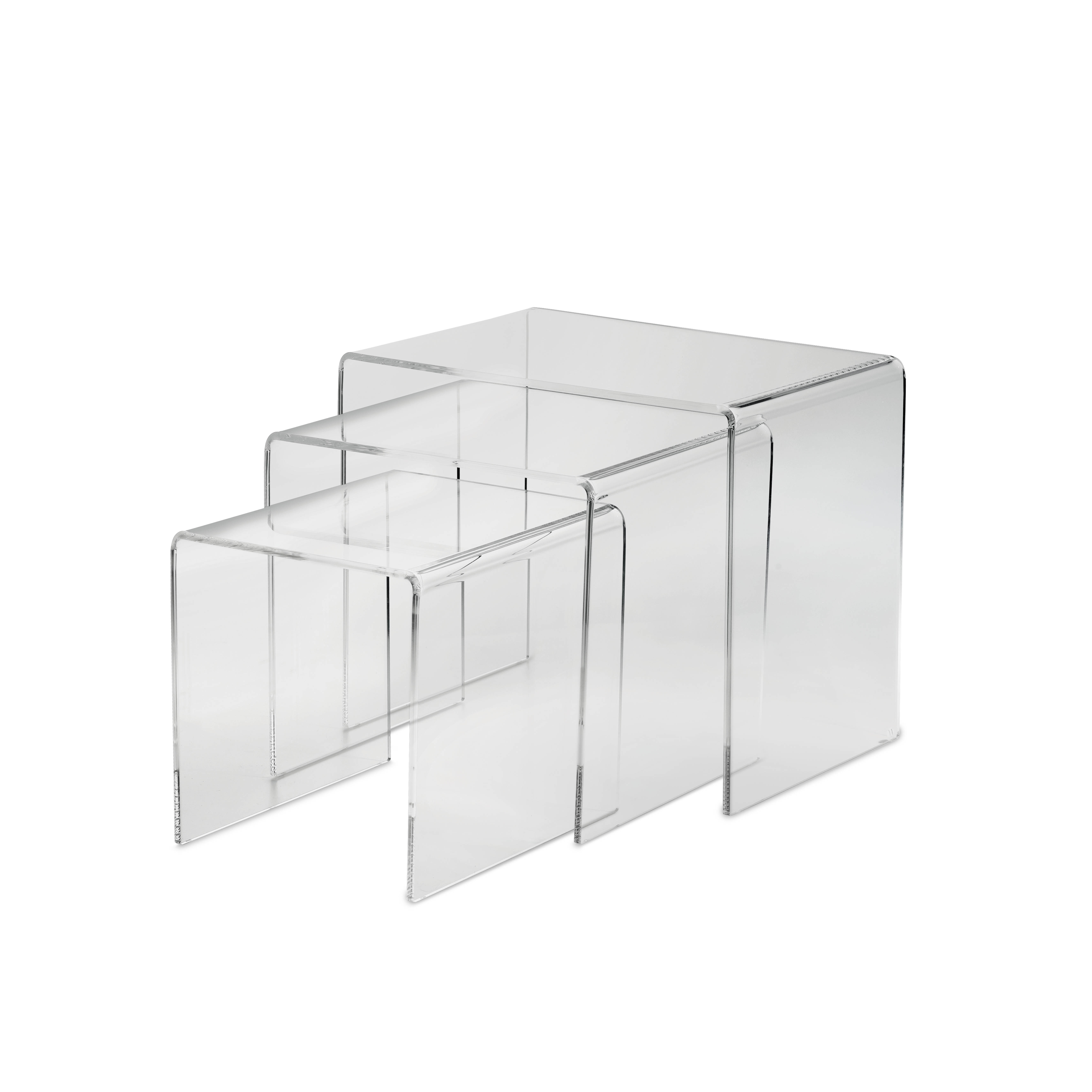 To eller tre stabelbare sofaborde i klart akrylglas.