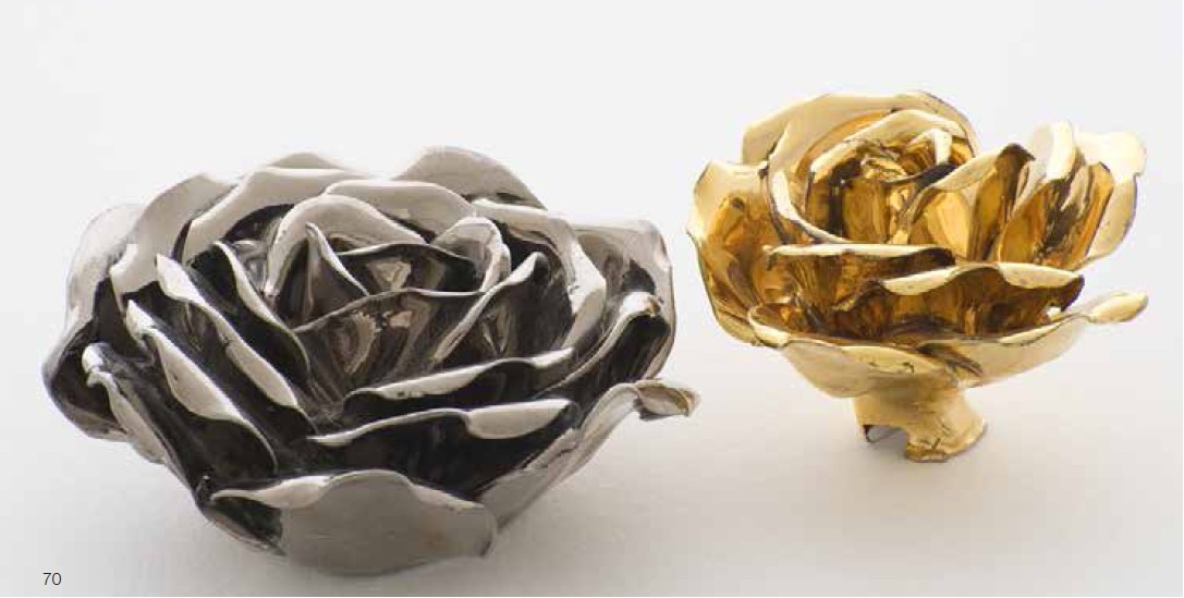Keramisk skulptur i form af en rose, guld eller platin farve.
