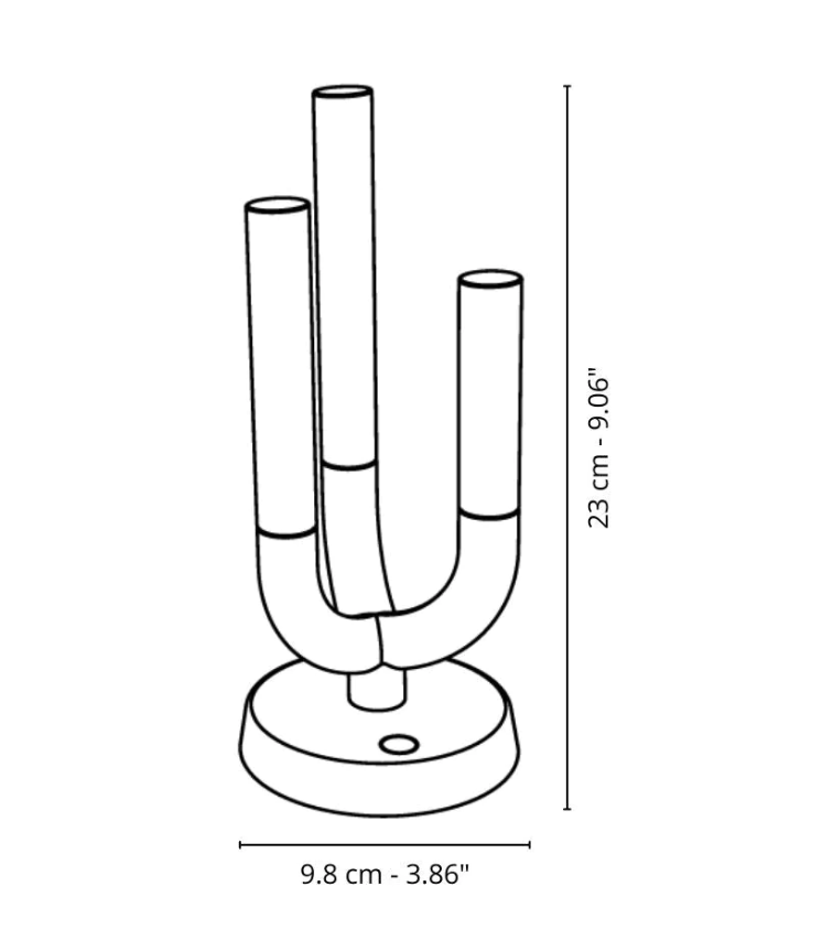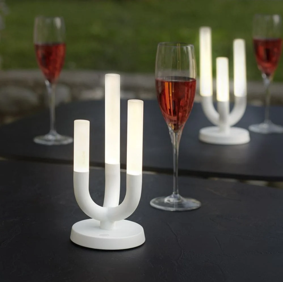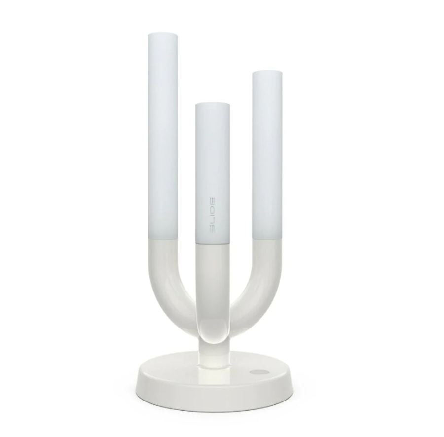 Lunas fremragende ydeevne er indrammet af en malet aluminiumsbase og tre cylindriske stilke i uigennemsigtig plexiglas, der hver er udstyret med en LED-lyskilde med et varmt lys på 2700K.