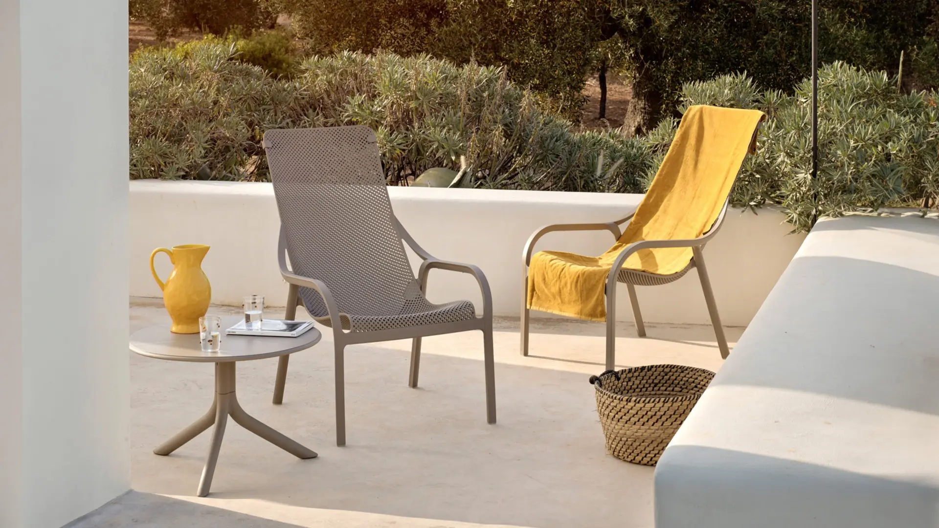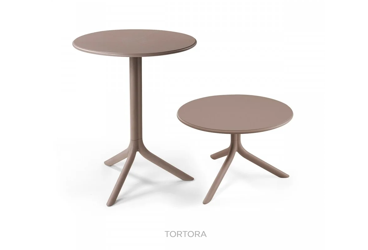 Sidebord i glasfiberharpiks med rund bordplade og trebenet fod, ideelt til udendørs brug, men også perfekt som et dekorativt element indendørs. Det er nemt at samle og skille ad og leveres med et praktisk sæt, der giver dig mulighed for at vælge mellem to forskellige højder.