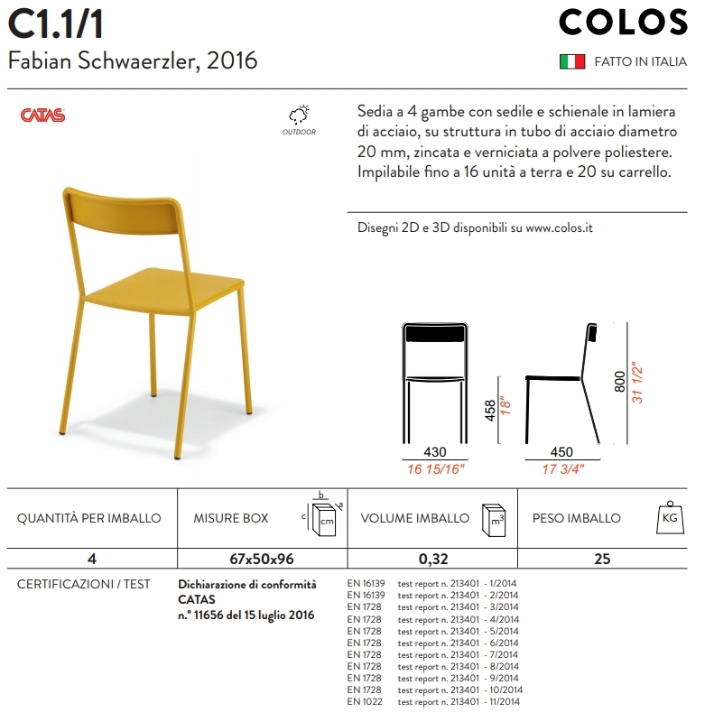 Den fås i 2 versioner, baseret på en solid rørformet metalstruktur, mens sædet i 1/4-versionen stadig er lavet udelukkende af metal, men med udskåret sæde og ryglæn, hvilket gør den visuelt endnu lettere.