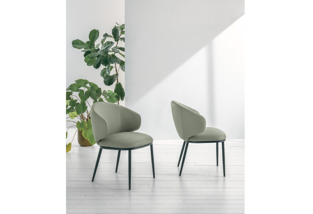 Sædet er fuldt polstret og betrukket med vintage Soft-Touch mikrofiber , et behageligt og rengøringsvenligt materiale, der fås i flere varme, moderne nuancer. De malede metalben strømliner stellet og giver en visuel lethed.