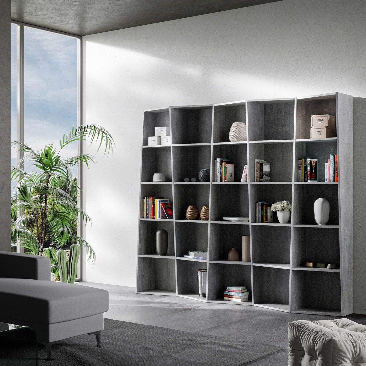 TREK-reolen er lavet af trapezformede paneler, hvilket gør dens design innovativt og raffineret på samme tid.