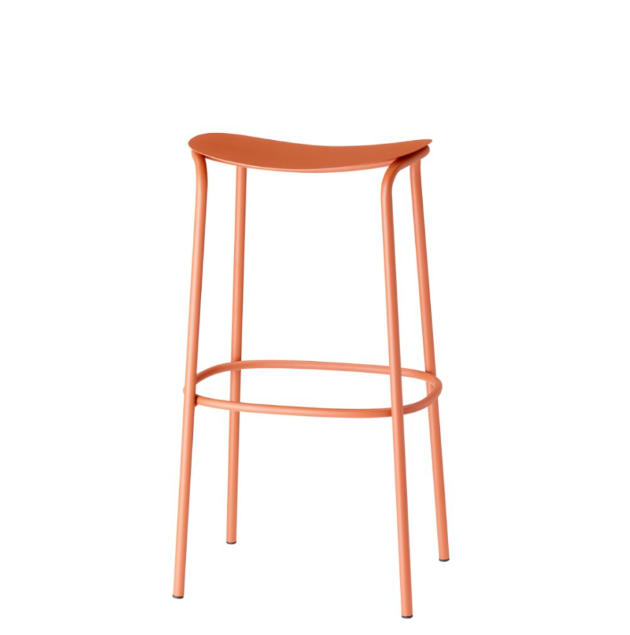 Trick-skamlen kombinerer lette, buede linjer med en solid og holdbar metalramme, hvilket skaber et moderne og livligt møbel.