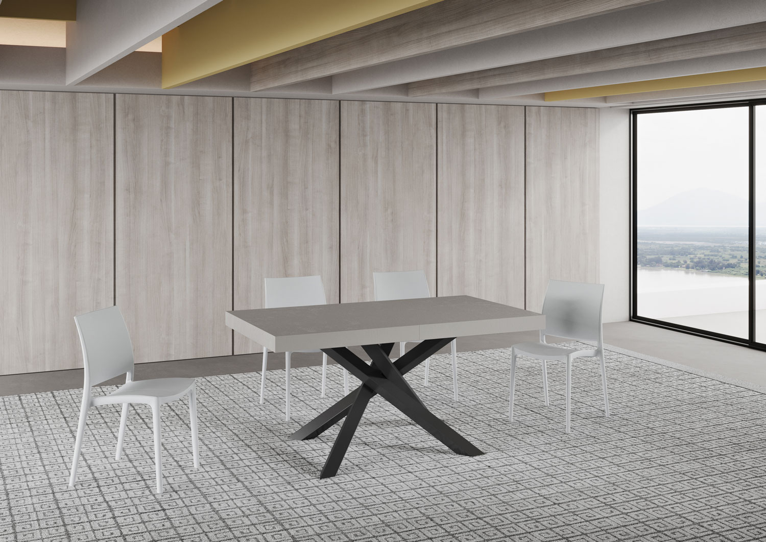 Det 160 cm store Volantis-udtræksbord med sit sofistikerede, moderne design tilpasser sig enhver indretning og er det ideelle valg både som spisebord og som et møbel i stuen, hvor du kan byde gæster velkommen med stil. Det udtræksbare Volantis-bord kan gradvist forlænges op til 264 cm og har plads til 12 personer. Bordet er lavet med melaminpaneler, jernben og en sammenklappelig bordplade. Udtrækssystemet med teleskopskinner i aluminium gør bordet stabilt og robust, selv når det er fuldt udtrukket, uden behov for yderligere understøtninger. Udtræksbordene er straks klar til brug, da de er placeret under hovedbordpladen. Itamoby-produkt Fremstillet i Italien Mål: Lukket bord: B 160 D 90 H 77 cm Længde med 1 udtræk: 212 cm Længde med 2 udtræk: 264 cm
