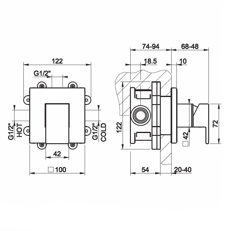 Udvendige dele til vægmonteret etgrebs blandingsbatteri.