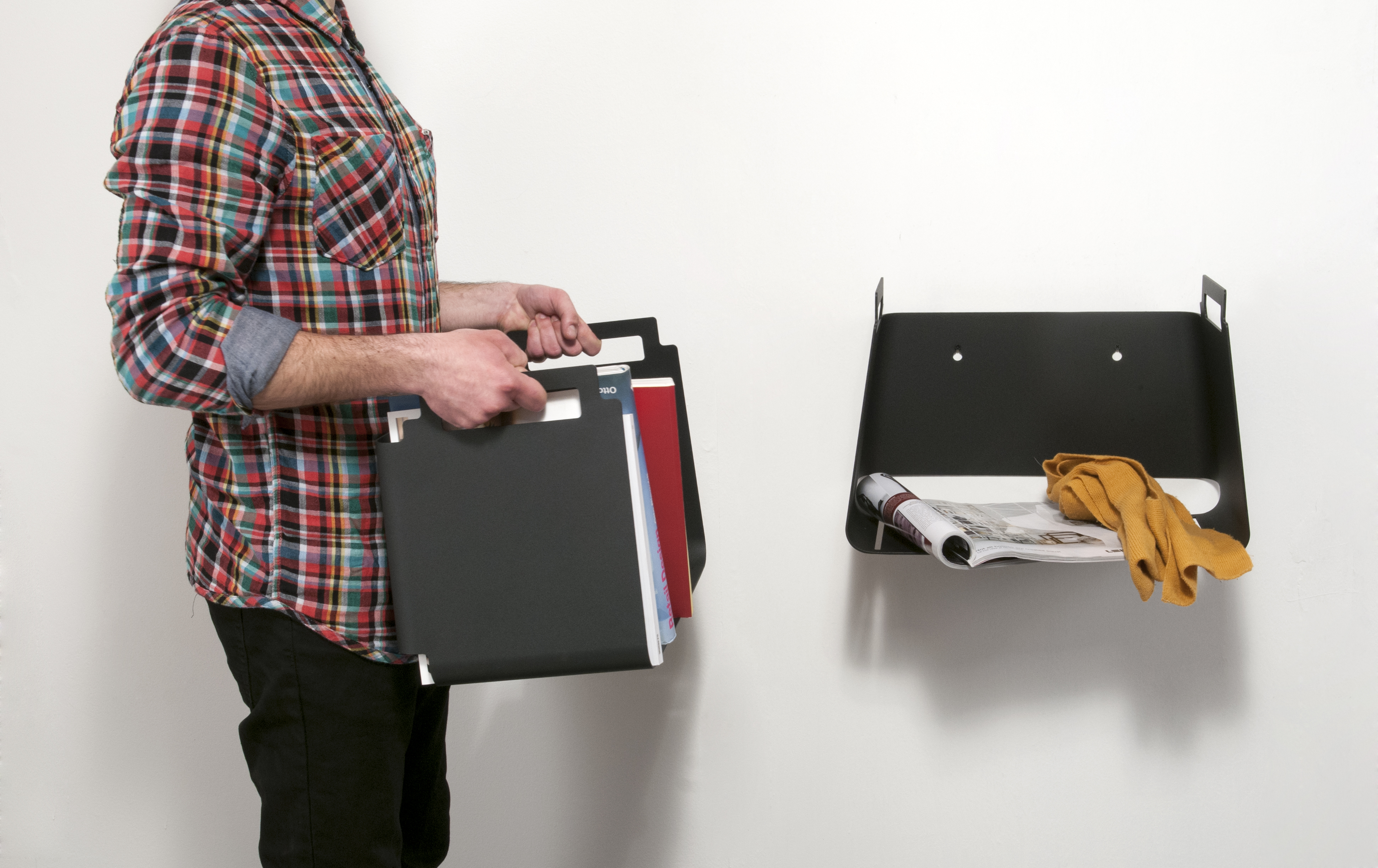 Et ark papir, med enkle folder, bliver til en beholder, men kan også være en hylde.