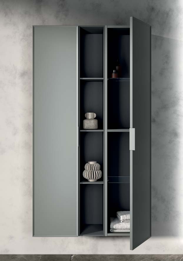 Venere 106-kompositionen fra Oltrebagno er designet til at give badeværelset en moderne og funktionel æstetik. Dette væghængte skab skiller sig ud med sit rene design , sans for detaljer og brugen af holdbare, fugtbestandige materialer.
