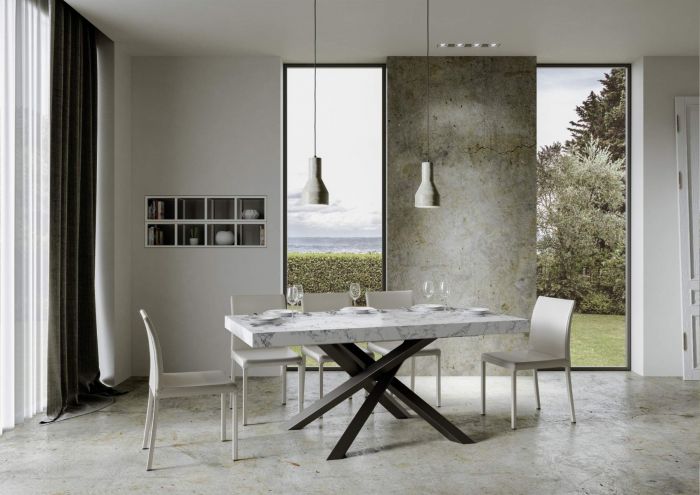 Volantis 160 bordet tilhører Volantis -familiens kollektion . Det fås i størrelsen 160x90. Det kan gradvist forlænges ved at tilføje en eller to tillægsplader for at opnå den ønskede bredde. Tillægspladerne er 52 cm lange og opbevares under bordet, klar til brug.
