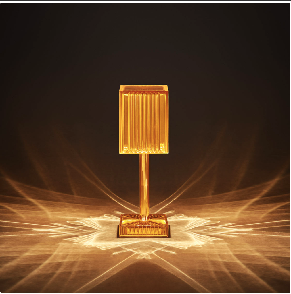 Lampada da tavolo fabbricata in PMMA con sistema a iniezione.