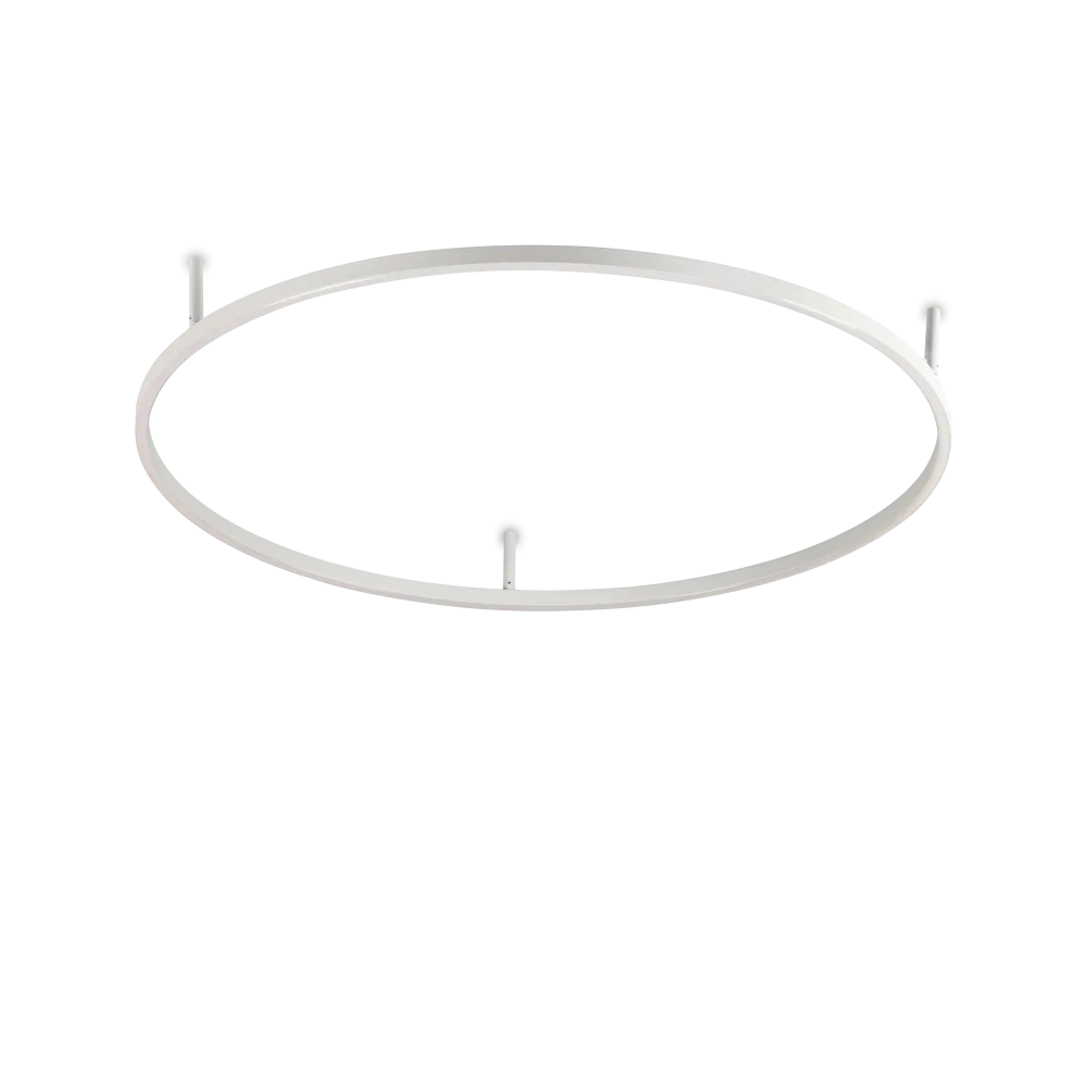 Lampada a sospensione costituita da una montatura sottile in alluminio verniciato bianco o nero opaco e diffusore opale in policarbonato. Disponibile in quattro dimensioni diverse. LED integrati, disponibile in temperatura di colore 2700 K, 3000 K e 4000 K e con controllo ON-OFF oppure dimmerabile DALI/Push, CRI ≥ 90, durata utile LED 50.000 h , protezione IP20, classe isolamento II.