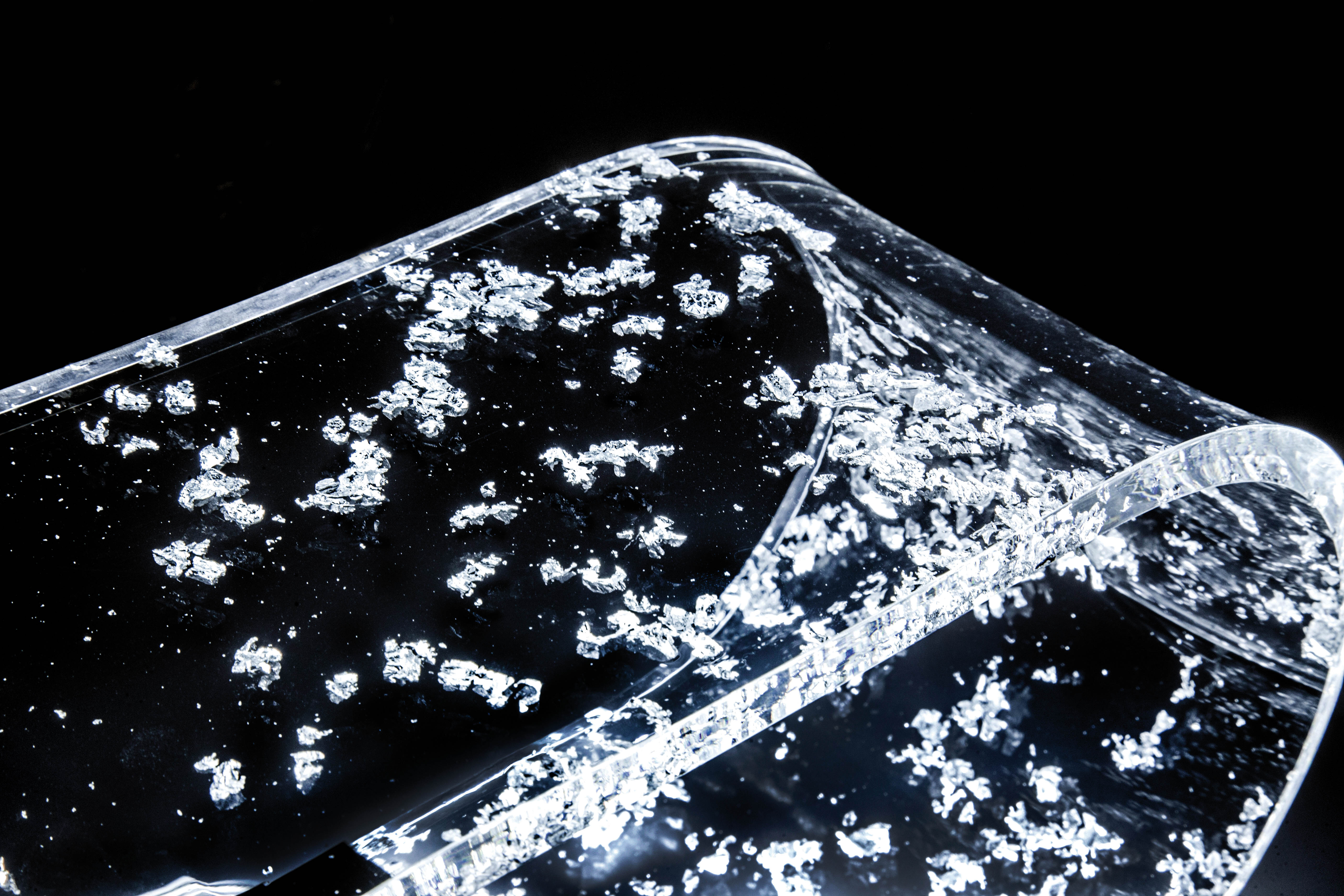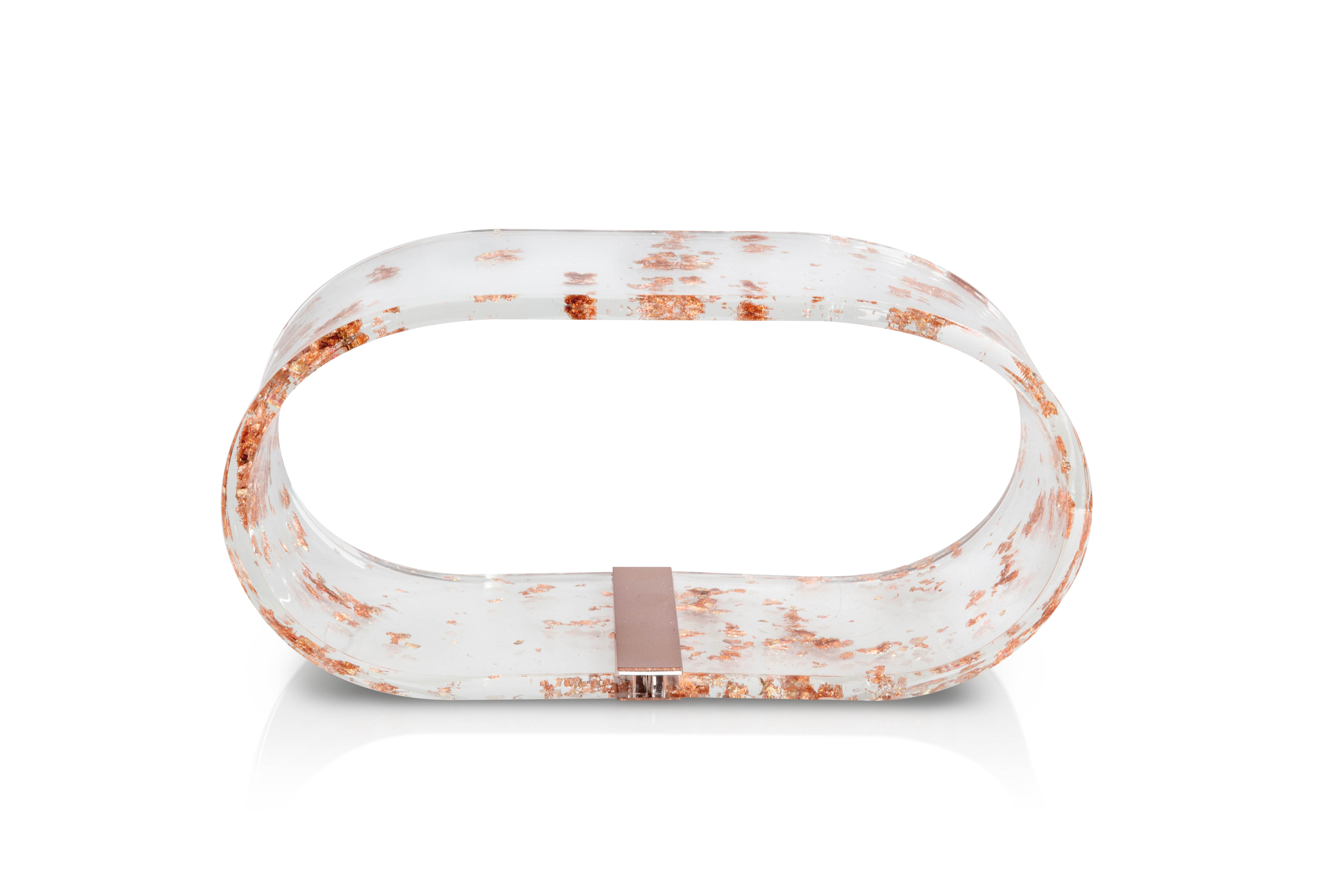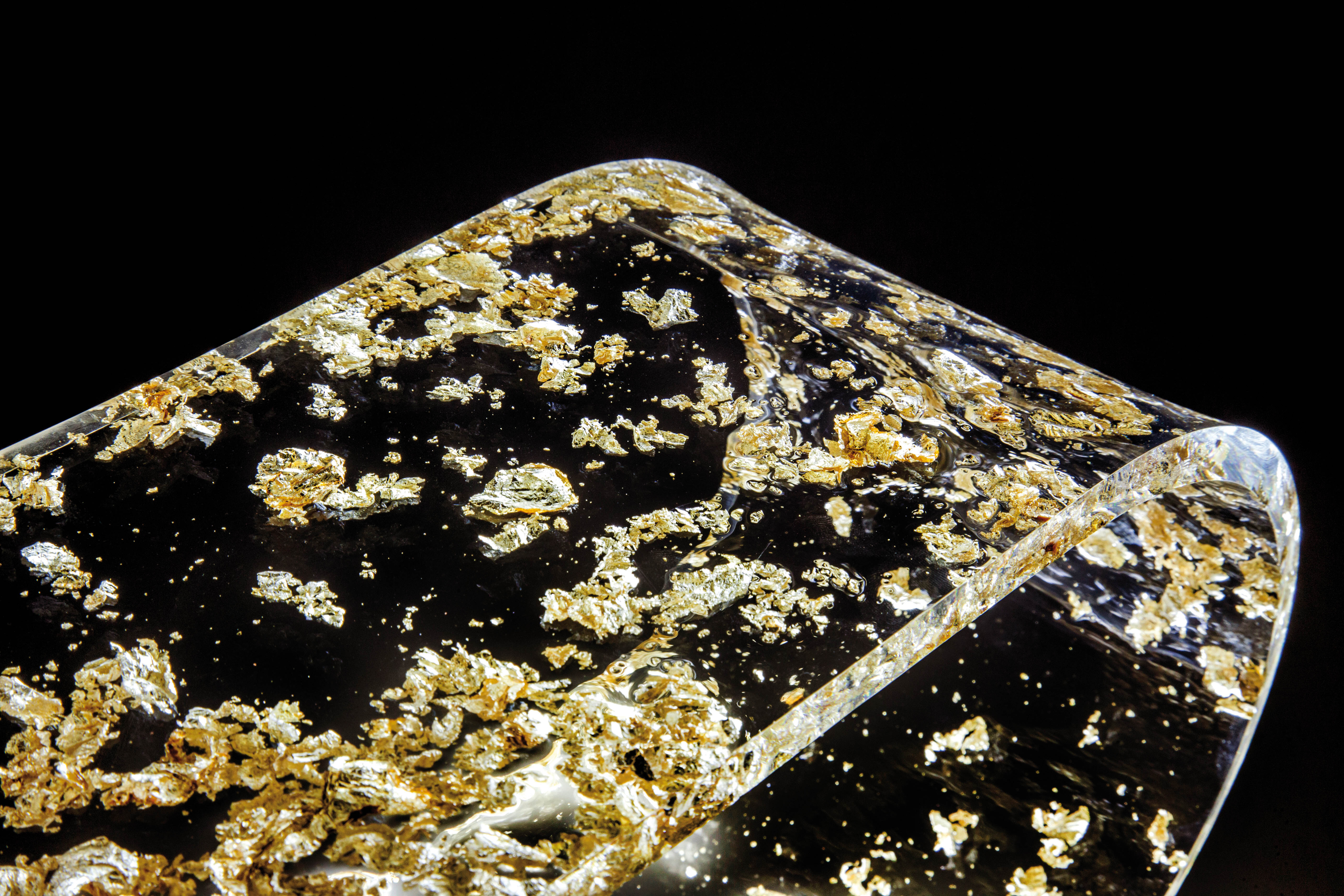 Lampada da Tavolo in Cristallo Acrilico con inserti in foglia oro, argento o bronzo.