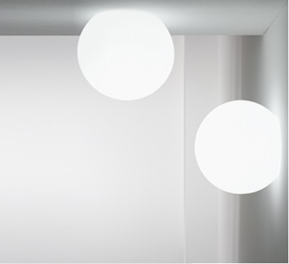 Lampada a muro e lampada da soffitto a basso consumo energetico con corpo illuminante realizzato in polietilene attraverso la tecnologia dello stampaggio rotazionale.