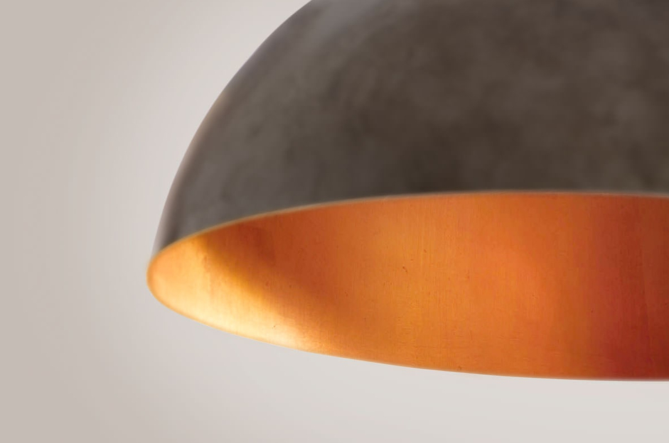 Sospensioni di grandi dimensioni, caratterizzate da una forma a semisfera in acciaio.