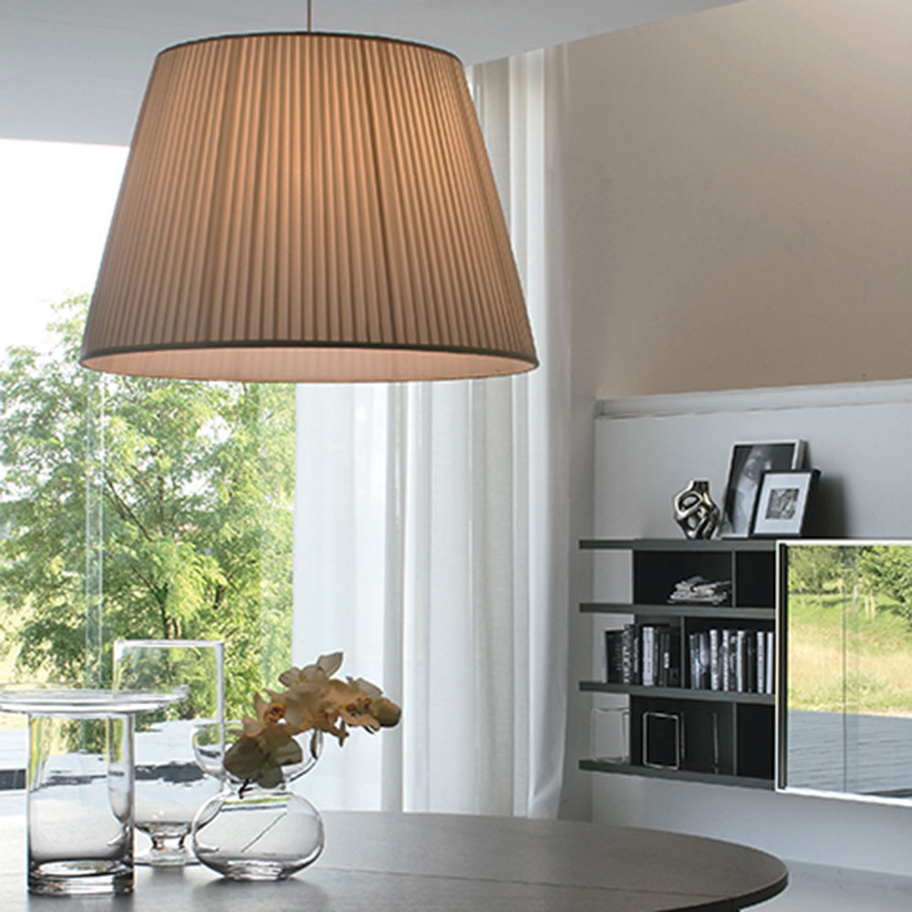 Lampada conica in tessuto plissè.