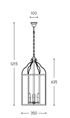 Grande lanterna a sospensione di forma esagonale, dal forte impatto decorativo.