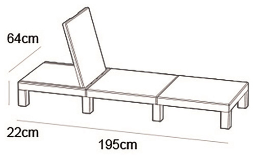Ha dimensioni di 195 cm di lunghezza, 65 cm di larghezza e 25,5 cm di altezza, con uno schienale reclinabile in 4 posizioni per garantire il massimo comfort.