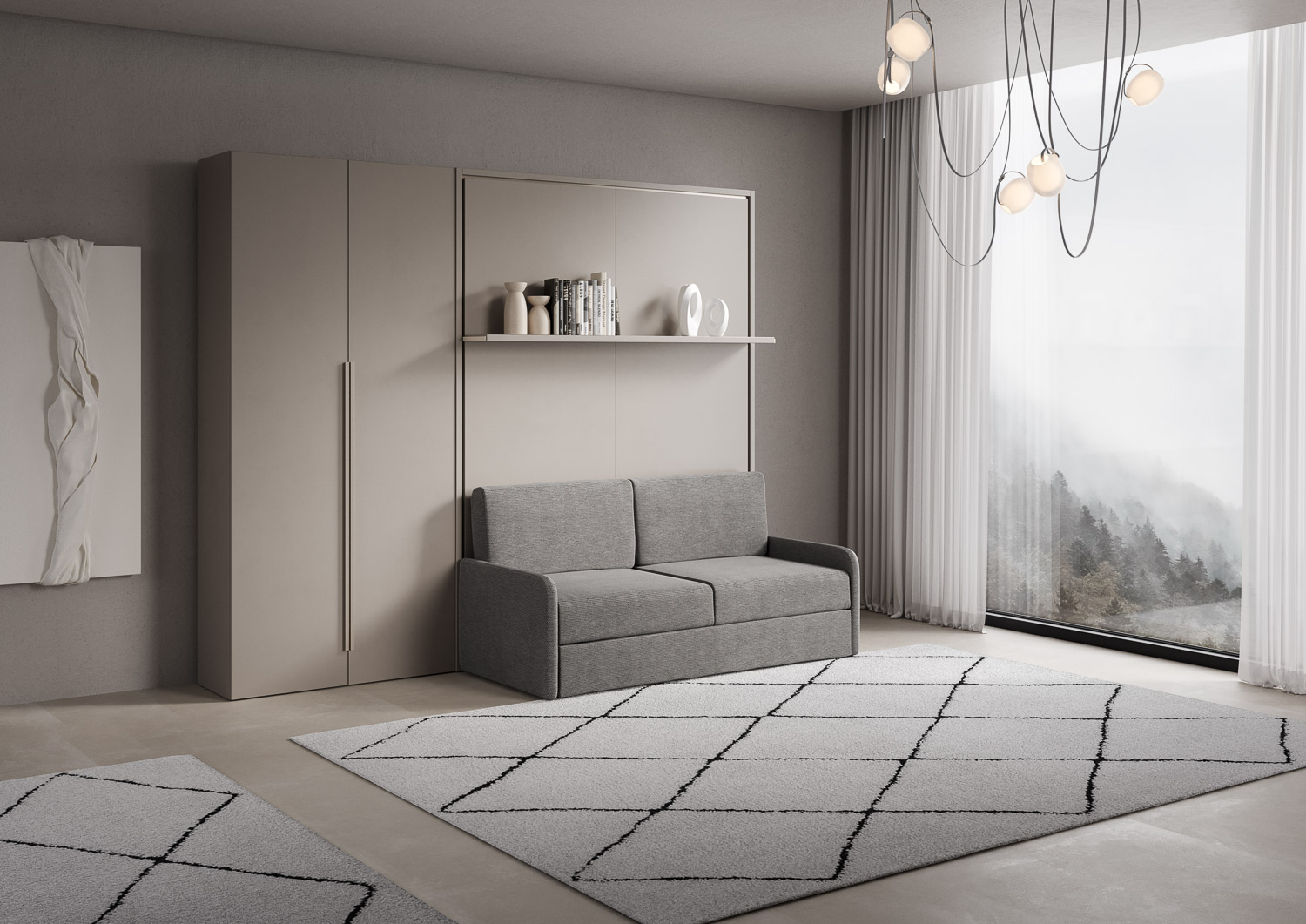 | Materiale | Il letto a scomparsa verticale francese 140 Versia Sofà, con divano e mensola integrati, reinventa il concetto di spazio. Eleganza, funzionalità e design si fondono in Versia Sofà, il letto a scomparsa verticale francese 140 che trasforma la zona giorno i |