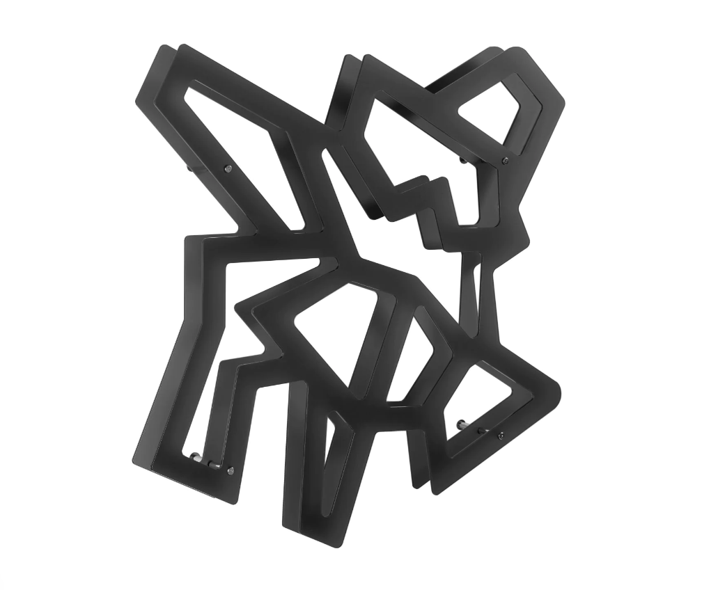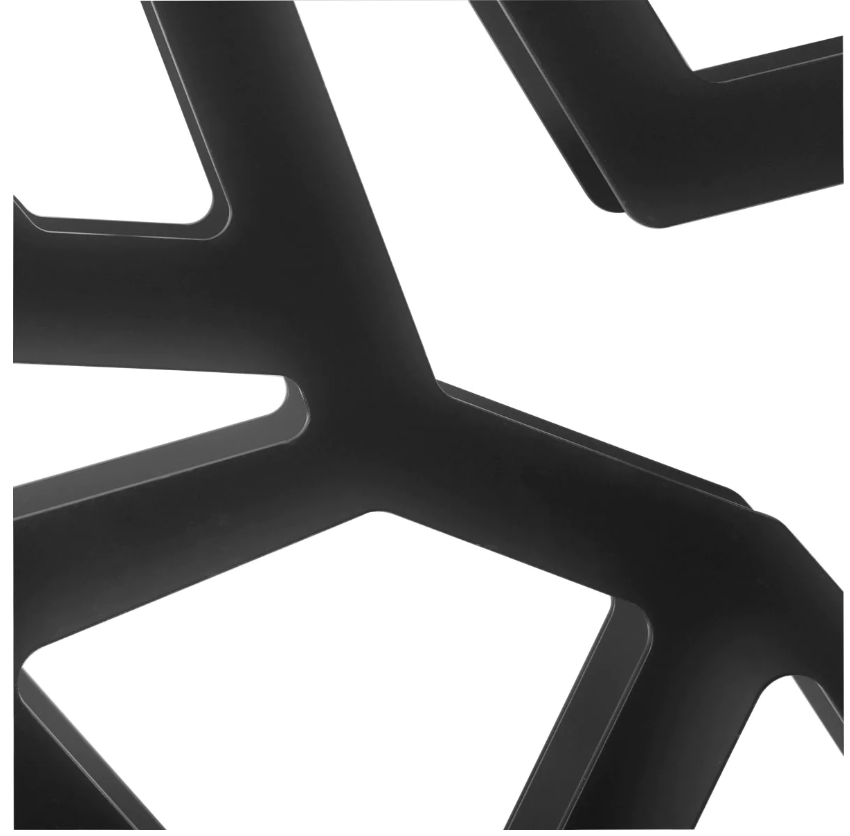 Supporti in metallo cromato e struttura in metacrilato disponibile in varie colorazioni.